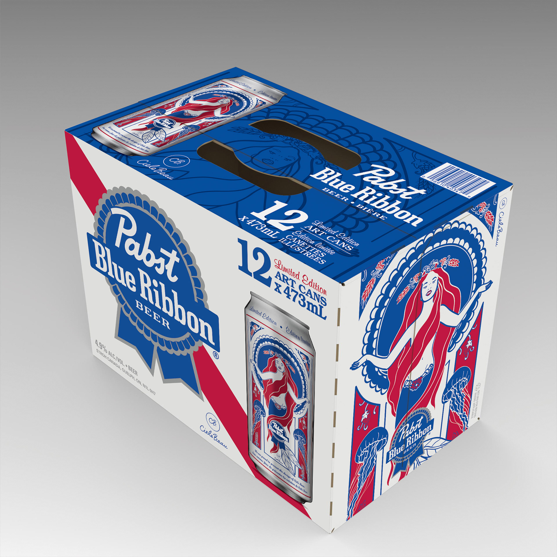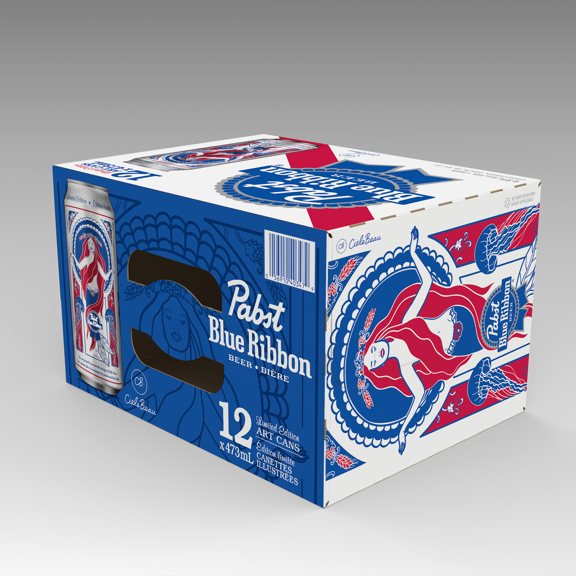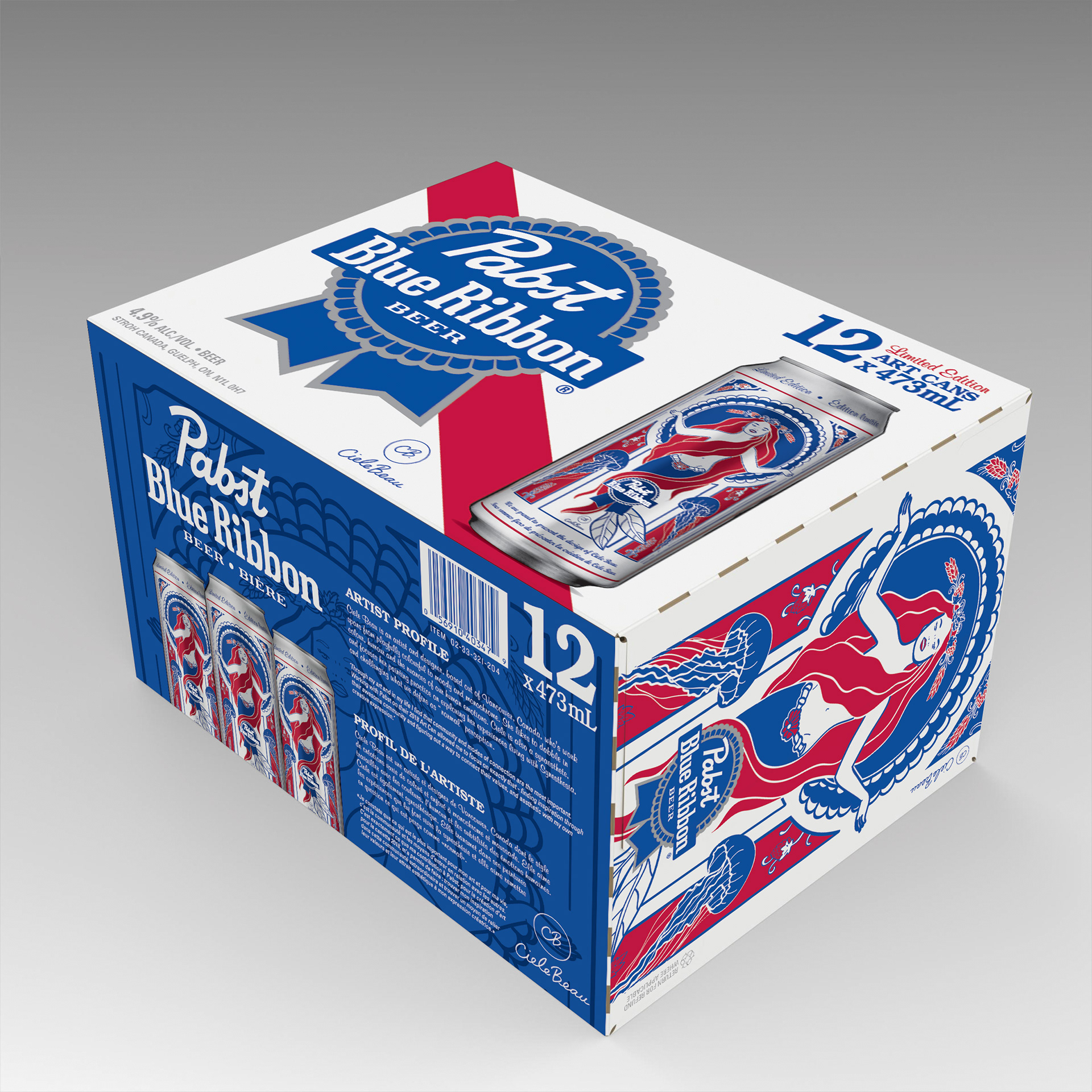 Pabst Blue Ribbon commissioned artists to create illustrations for a series of limited edition 473mL cans. My role was to creatively integrate these unique artworks into the packaging design. To give the illustrations prominence and attract attention on the shelf, I featured them prominently on the end panels. I also transformed the artwork into duo-tones for the handle and bottom panels, ensuring cohesive branding throughout the packaging.