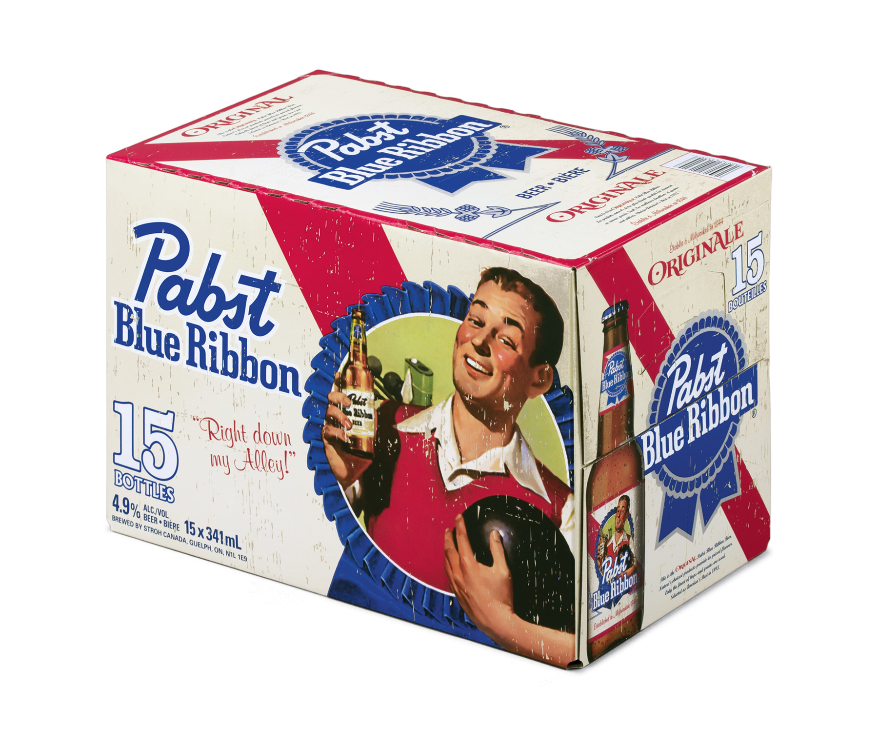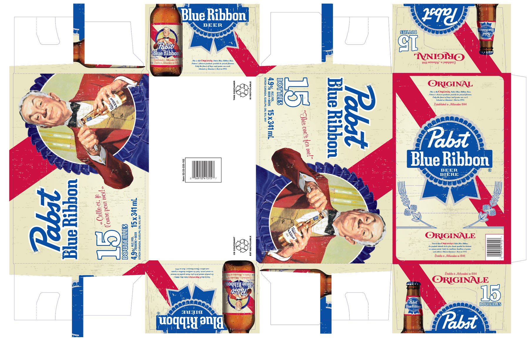 These vintage packs drew inspiration from Pabst Blue Ribbon's original 1947 LIFE Magazine print ads. Since the artwork had long been lost from the PBR archives, we sourced the ads from eBay resellers, scanned them, and meticulously color-corrected them, making a few tweaks to achieve the perfect look. The top of the pack was designed to mimic the iconic PBR can label, reinforcing the brand's strong visual identity. These packs resonated particularly well with Boomers and Gen X, driving strong sales.